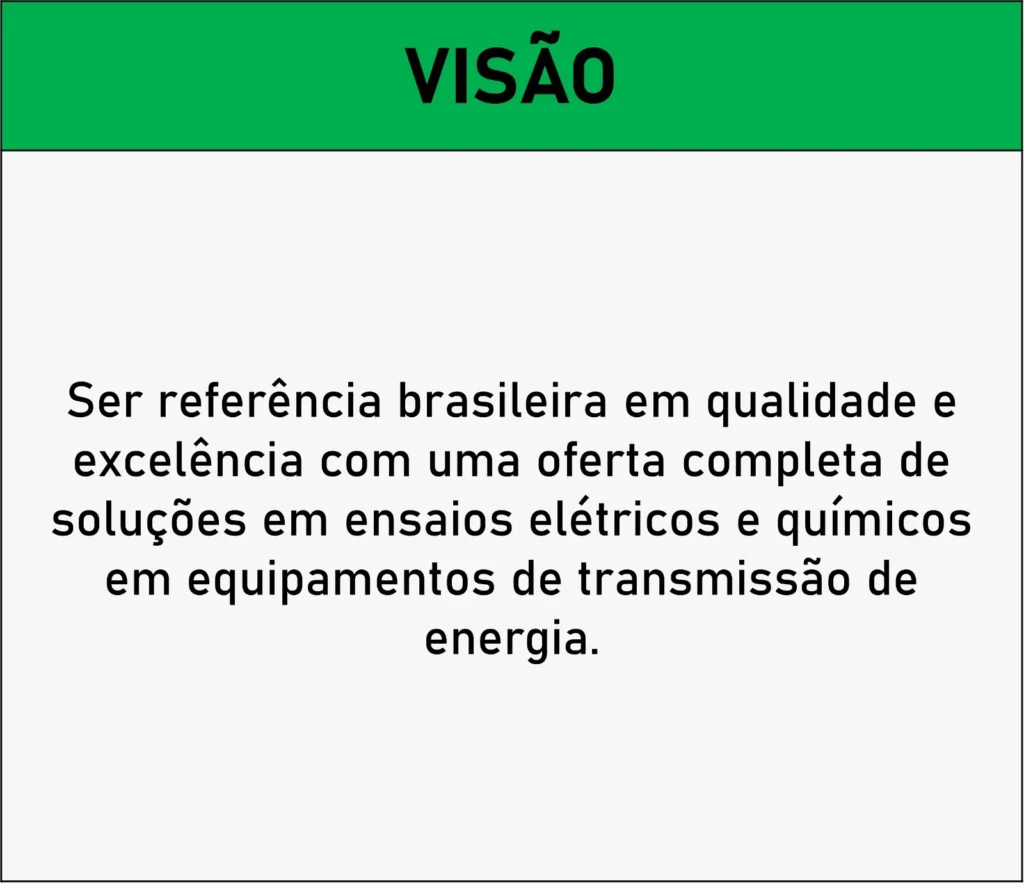 NOSSO OBJETIVO é sermos referência em inovação e excelência no setor elétrico, liderando a evolução tecnológica para um mundo mais sustentável, além de sermos reconhecidos como parceiros essenciais, moldando um futuro em que a energia é sinônimo de eficiência e confiança.